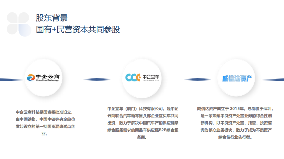 中企新业成立于2015年,总部位于香港,运营办公地址分别设立于深圳、天津、上海;业务涵盖北京、上海、天津、粤港澳大湾区;旗下涉及律师事务所、资产管理公司、商业运营公司等协同业务板块; 中企始终坚持以“以人为本、诚信立业”的经营原则,“以客至上,合作共赢”的服务理念,以“不良资产投资为出发点,不良资产处置及不动产经营”为业务核心,专注于不良资产处置的产业投资管理平台,目前公司投资涉及实业、地产、资产处置、金融服务等多个行业和领域,拥有专业化的员工队伍和优秀的律师团队,收购并处置完成大量银行债权、大宗物业并购及管理,未来公司将继续以“不良债权投资为重点,多通道的资产处置为基础、资本运营为手段”深耕不良资产领域。
